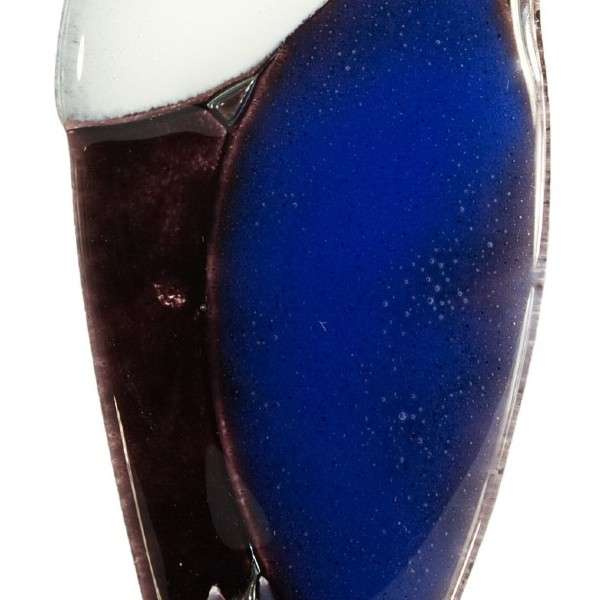 - Szklana figurka wykonana ręcznie w technice fiusingu. Kolorystyka biało-granatowa z dodatkiem zieleni i złota.