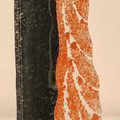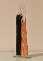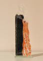Urocza, romantyczna dekoracja szklana przedstawiająca zakochaną parę w miłosnym uścisku niczym w pocałunku Klimta. Wykonana w technice szkła fusigowego w małej polskiej manufakturze szklarskiej. Energetyczna kolorystyka czerwono czarna z ciemno czerwonym motywem serc na piersiach. Istnieją wersję w innych zestawieniach kolorystycznych. Twarze postaci wyrysowane techniką grawerska. Idealna na niepowtarzalny prezent. Wymiary wysokość 25 cm, szerokość 7 cm , głębokość 4 cm.