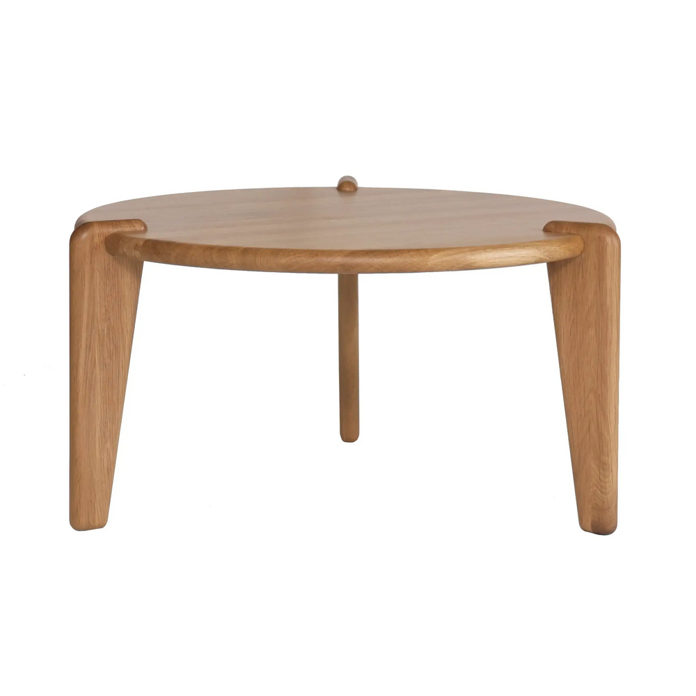 Okrągły stolik na oryginalnych 3 nogach wychodzących poza blat . Blat i podstawa wykonane w 100% z litego dębu dodaje stolikowi elegancji oraz podkreśla jego naturalny przyjazny charakter.