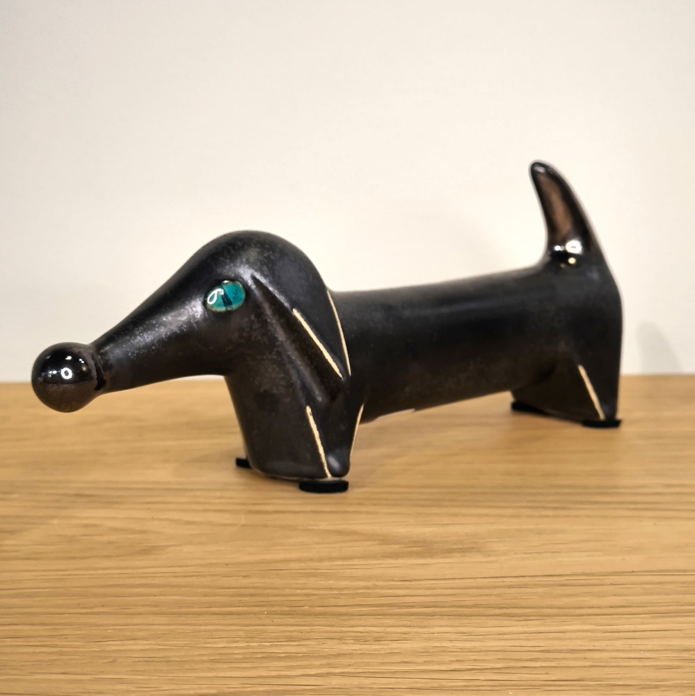 • Ceramiczna figurka- jamnik w kolorze matowym czarnym.