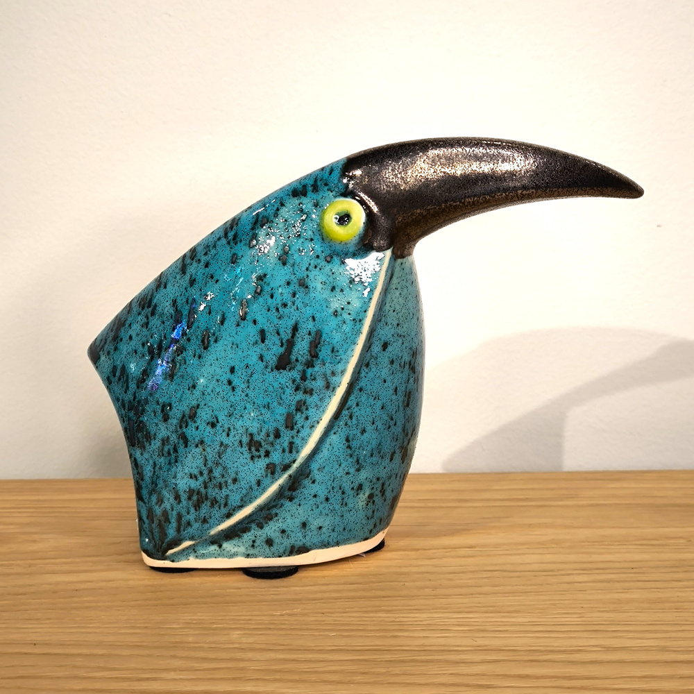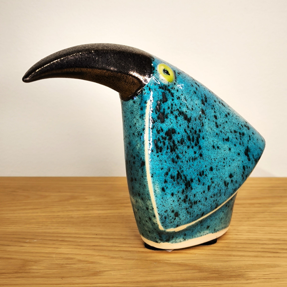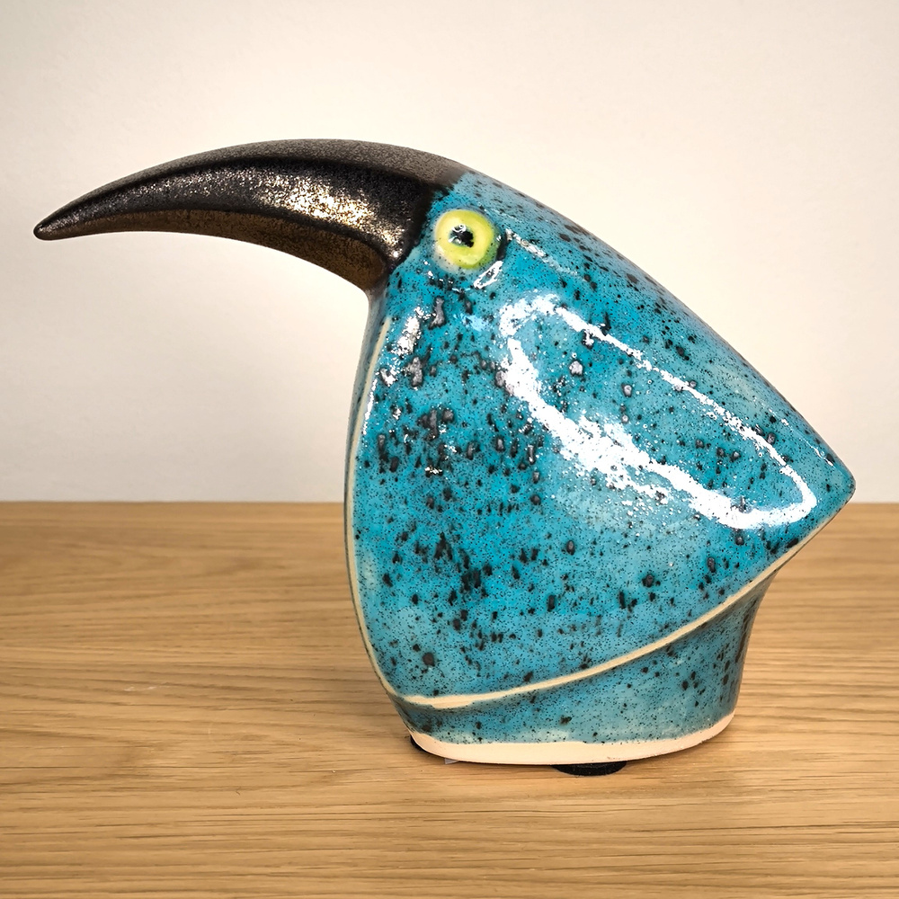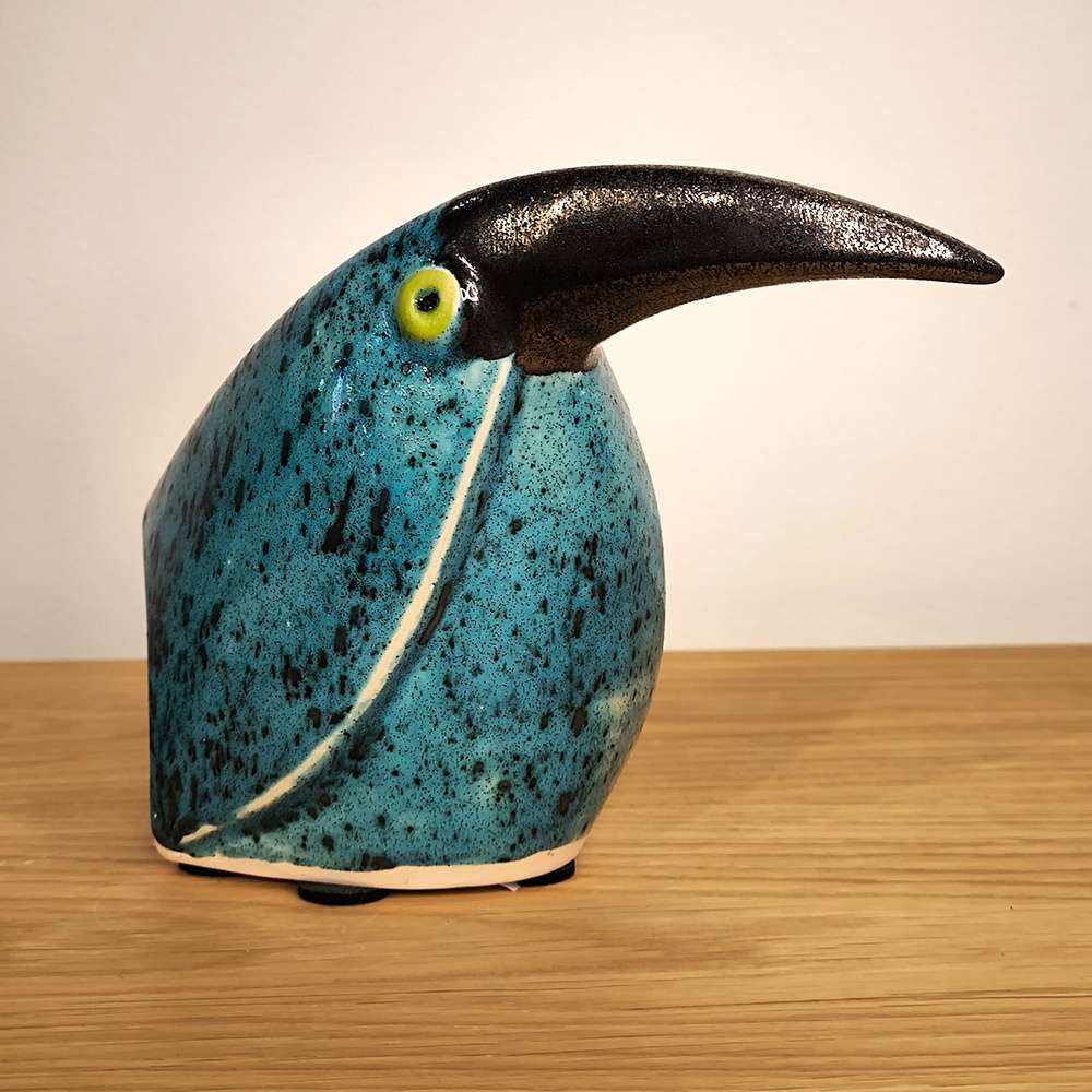 Kwintesencja formy ptaka . Kansiasta minimalistyczna wersja dziobaka z długim dziobem. Wykonana ze szkliwionej na różne odcienie turkusu ceramiki. Ręcznie wykonana w małej polskiej manufakturze ceramicznej. Możliwość skompletowania z kolegą z serii lub w innej np. czerwonej kolorystyce. Oryginalna dekoracja mieszkania czy domu. Pięknie wygląda ustawiona na półce lub parapecie. Świetny pomysł na nietuzinkowy prezent. Wielkość wys. 14 cm /szer. 7 cm/ dl. 16 cm.