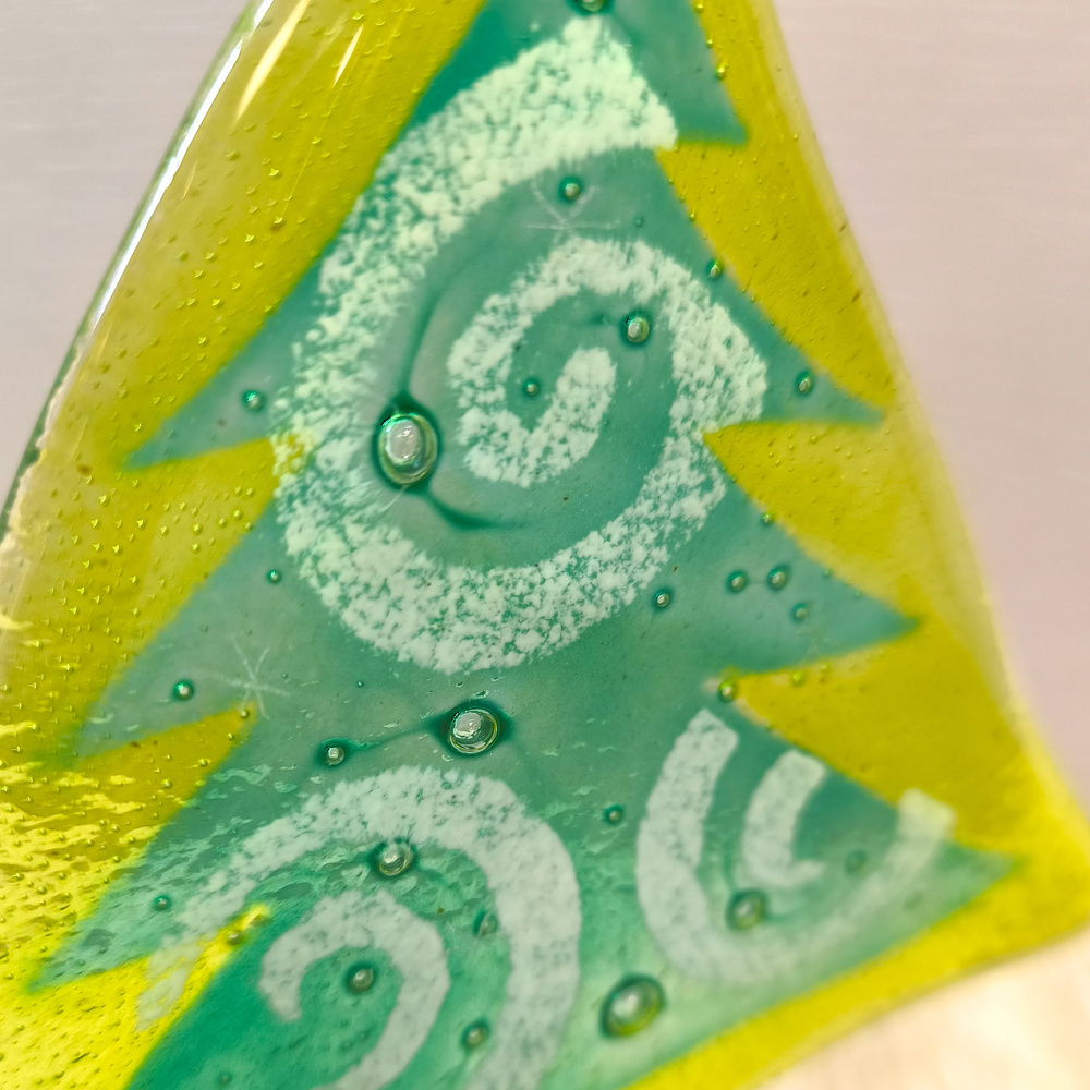 - Szklana figurka wykonana ręcznie w technice fusingu. Kolor jasno zielony z przezroczystą podstawą.