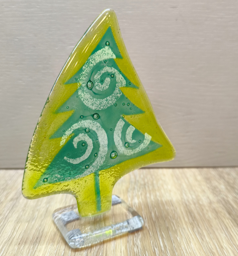 Unikatowa, szklana figurka wykonana ręcznie w małej polskiej j manufakturze szkła. Piękna dekoracja domu na świąteczny czas . Klasyczna świąteczna zimowa kolorystyka zieleni połączonej z seledynem w zabawnej pogodnej formie. Świetnie wygląda w połączeniu ze świątecznym reniferkiem, bałwankiem lub aniołkiem . Odnajdzie swoje miejsce na okiennym parapecie/ przy kominku lub na świątecznym stole. Idealna na unikatowy interesujący prezent. Wielkość szer. 11 cm, wys. 14 cm, gł. 4 cm.
