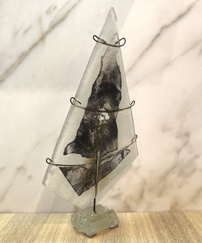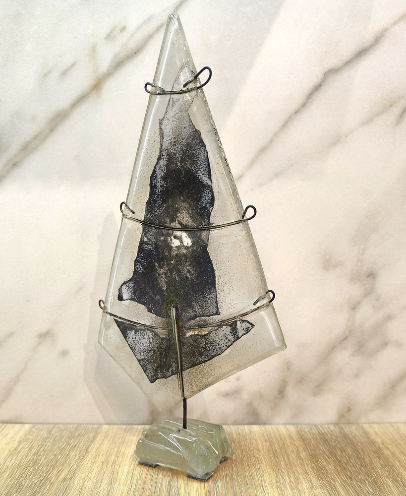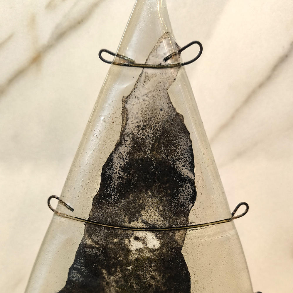 - Szklana figurka wykonana ręcznie w technice fusingu. Kolor transparentne drzewko z szaro metalicznymi elementami